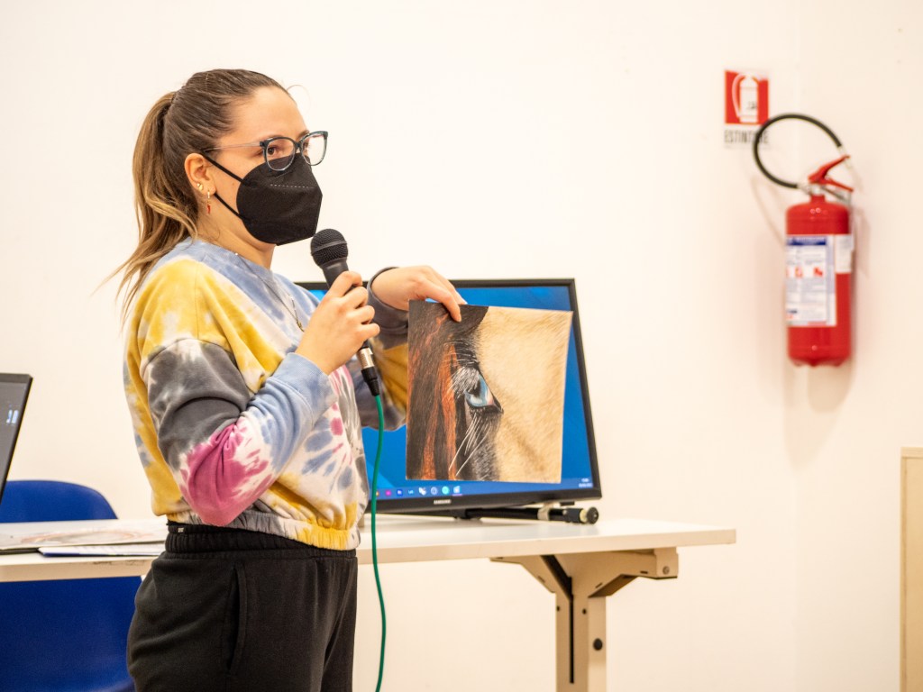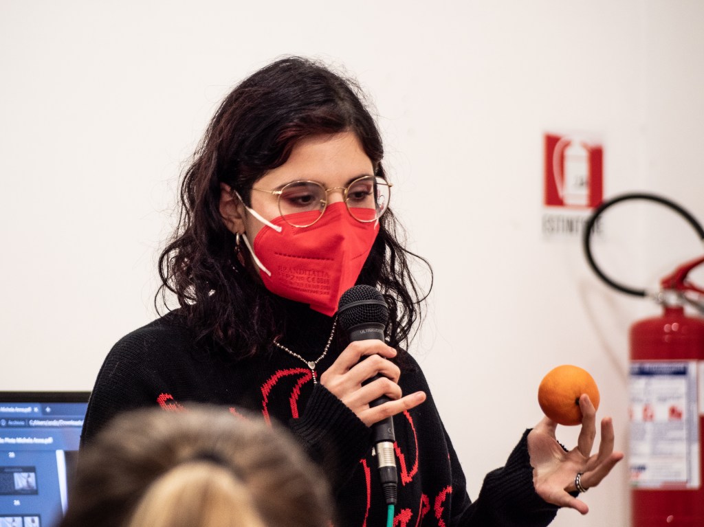 Sul tema dell’identità abbiamo riflettuto anche in modo collettivo. A ciascun partecipante è stato chiesto di portare un oggetto che lo rappresentasse in forma artistica. Ognuno ha scelto qualcosa di significativo, in un dialogo a più voci che ha costituito un momento di ascolto e apertura reciproci. Tanti ragazzi e ragazze, tante storie diverse: Riccardo ha portato alcuni suoi autoritratti fotografici attraverso i quali ha condotto una riflessione su sé stesso e sulla propria autostima; Matilde ha presentato alcuni suoi disegni e gli occhiali che ha realizzato nel corso dei suoi studi di ottica; Viola ha scelto un’arancia, come simbolo di sintesi e perfezione naturale, nonché come portatrice di significati legati alla propria esperienza personale; Stefania ha mostrato una vecchia foto della nonna per rappresentare l’idea di opera d’arte che vive attraverso la memoria e i significati che le persone e le epoche le assegnano. E così via, ognuno si è presentato raccontando ai presenti una parte importante della propria identità.