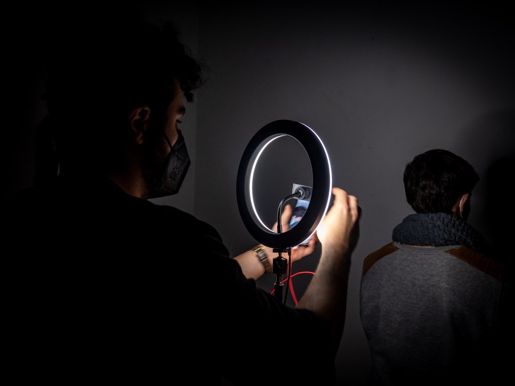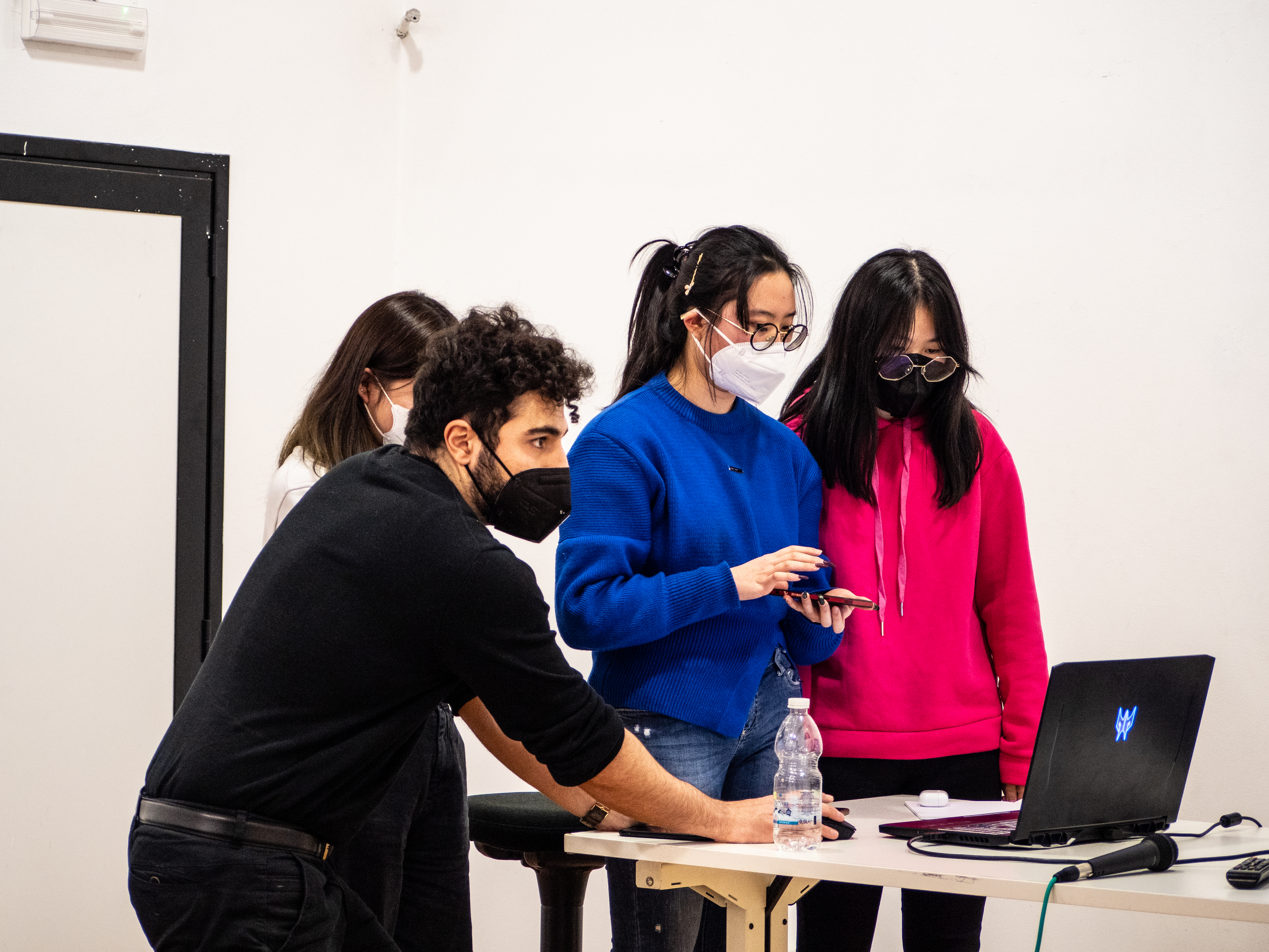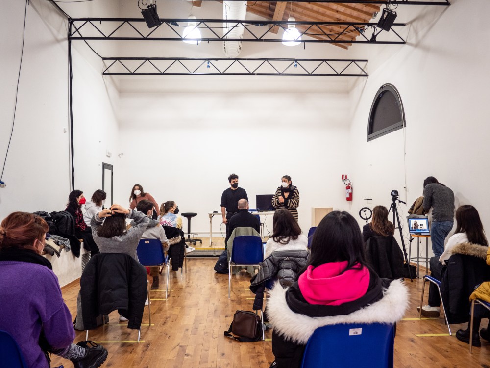 L’incontro si è concluso con il consueto momento laboratoriale previsto negli incontri 10×10. L’artista Andisheh ha guidato i ragazzi nella realizzazione di un video che sarà poi presentato alla mostra finale. Luci spente, una sola illuminazione centrale, una sedia al centro: pochi istanti in cui ogni partecipante, a turno, si è seduto su quella sedia e ha pronunciato un’unica frase per descriversi. È stato difficile trovare l’espressione giusta: la ricchezza di un’intera personalità tradotta soltanto in qualche parola, in una frase. Eppure, i nostri ragazzi e le nostre ragazze ci sono riusciti, disvelando un pezzetto significativo delle loro personalità e, contemporaneamente, attraverso quest’atto di auto-analisi e auto-presentazione, aggiungendo un piccolo, significativo frammento alla costruzione della propria identità.