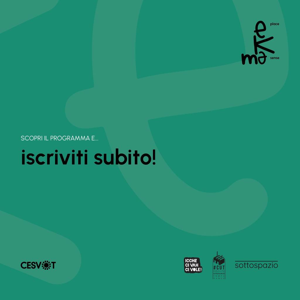 “Make Place – Make Sense. Percorso formativo sulla progettazione per la rigenerazione dal basso” è un’ attività co-progettata dall’APS Icchè Ci Vah Ci Vole, CUT – Circuito Urbano Temporaneo e Sottospazio. Il progetto è realizzato in compartecipazione con Cesvot. Per iscrizione di seguito il LINK al Form.